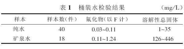 氟廣泛存在于自然水體中,人體各組織中都含有氟,但主要積聚在牙齒和骨筋中。適當(dāng)?shù)姆侨梭w所必需的,過量的氟對人體有危害,氟化鈉對人的致死量為6—12克,飲用水含2.4—5毫克/升則可出現(xiàn)氟骨癥。 中國規(guī)定飲用水中氟濃度小于1.0毫克/升,適宜濃度為2.4-5毫克/升。為了促進(jìn)健康飲水,我們對桶裝水的氟化物含量進(jìn)行了調(diào)查。